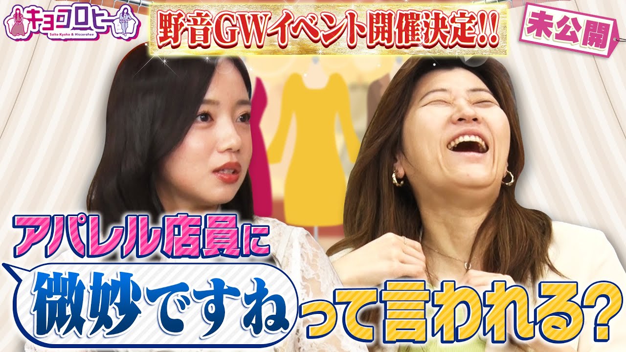 ▼野音GWイベントが決定!/アパレル店員に「微妙ですね」って言われる?《キョコロヒー/齊藤京子/ヒコロヒー》