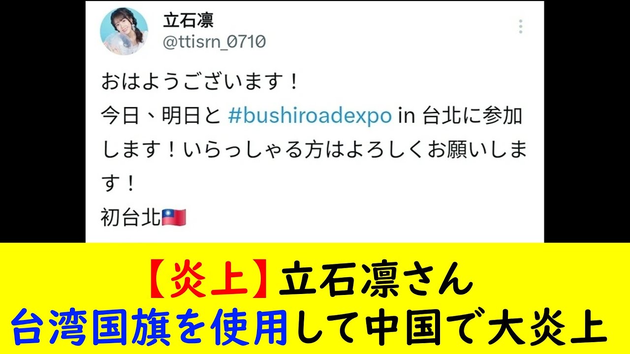 【炎上】立石凛さん 台湾国旗を使用して中国で大炎上