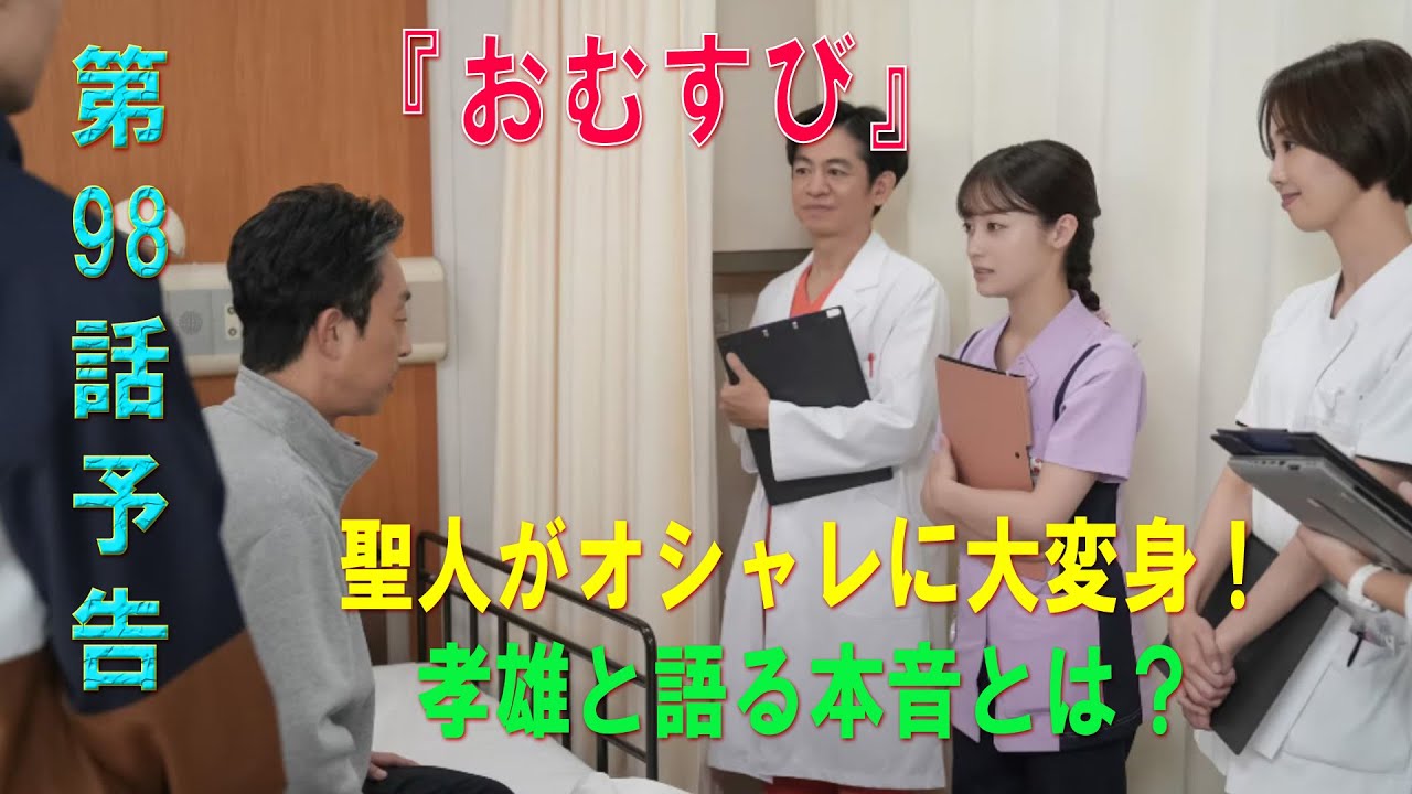 朝ドラ「おむすび」第98話予告 |ネタバレあらすじと感想!|聖人がオシャレに大変身!孝雄と語る本音とは?