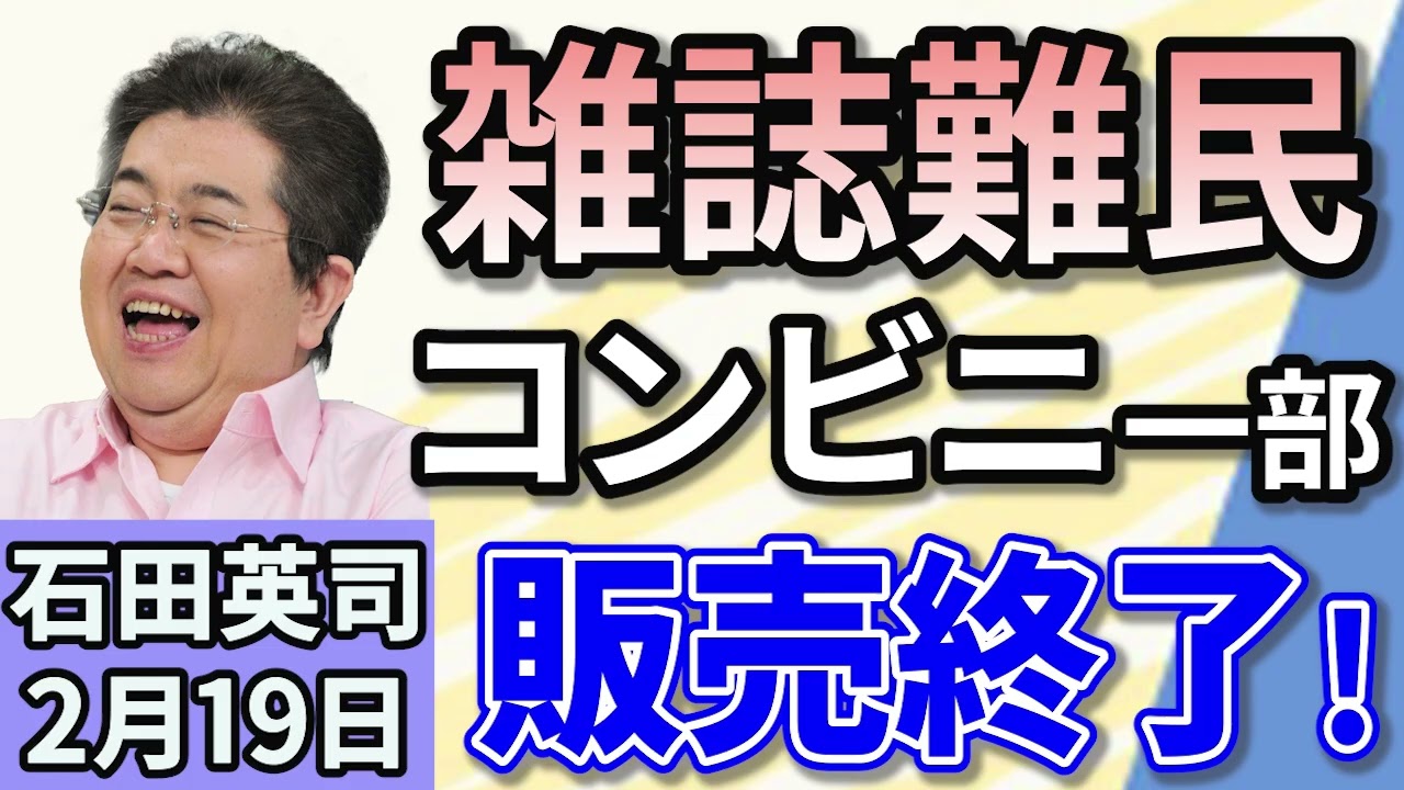 石田英司「ファミマとローソン計1万店で雑誌販売終了。どうなる?“雑誌難民“」「33都府県が下水道管を緊急点検。その結果は?」「まさにホラー!洞窟のクモを『ゾンビ』化して操る新種の菌類発見」2月19日