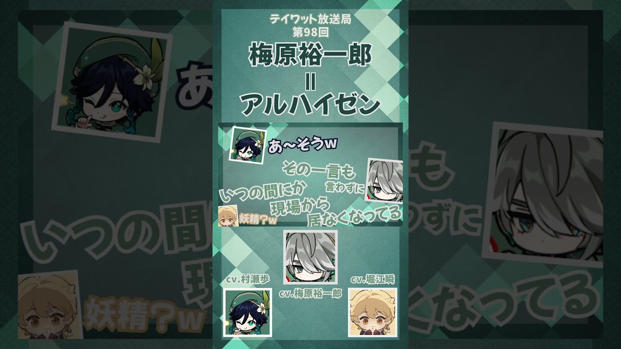 アルハイゼンのような梅原裕一郎【原神/テイワット放送局/梅原裕一郎/堀江瞬/村瀬歩】#shorts 元の動画 #原神 #テイワット放送局 #アルハイゼン #梅原裕一郎 #村瀬歩 #堀江瞬 #堀江瞬female voice actorsvoice actorsvoice actressesアルハイゼンウェンディテイワット放送局原神声優大原さやか女性声優村瀬歩梅原裕一郎 Write A Commentコメントを投稿するにはログインしてください。