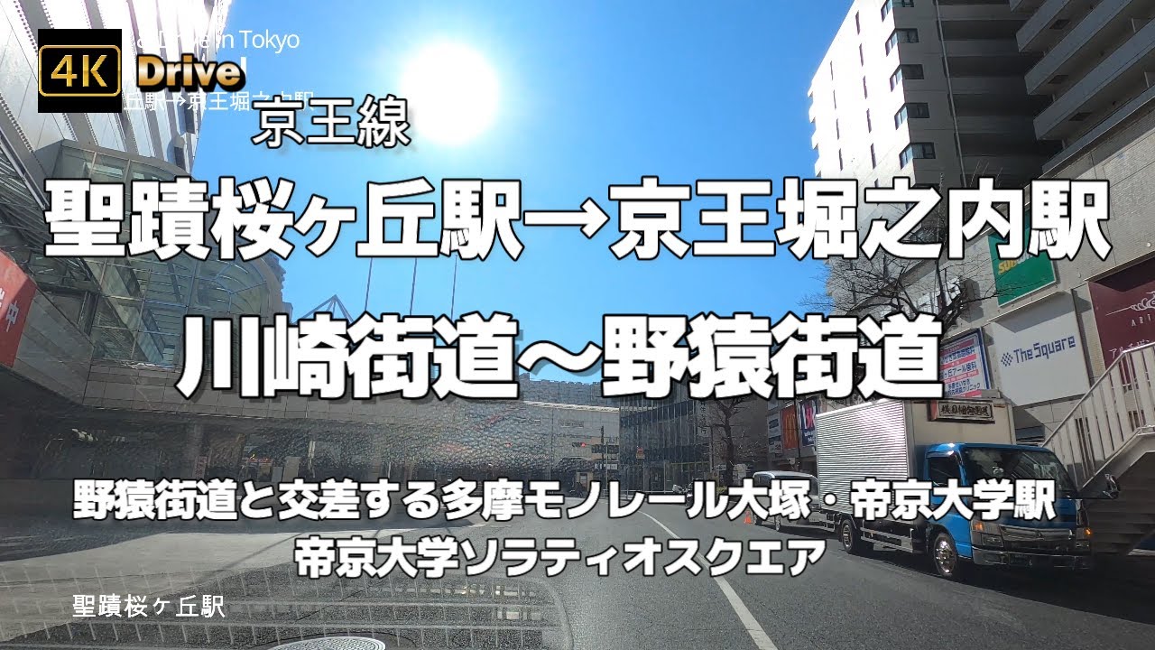 #ドライブ4K#京王堀之内駅#聖蹟桜ヶ丘駅#京王線#帝京大学#川崎街道#野猿街道#ソラティオスクエア#大塚帝京大学駅#ラーメン二郎八王子野猿街道店2