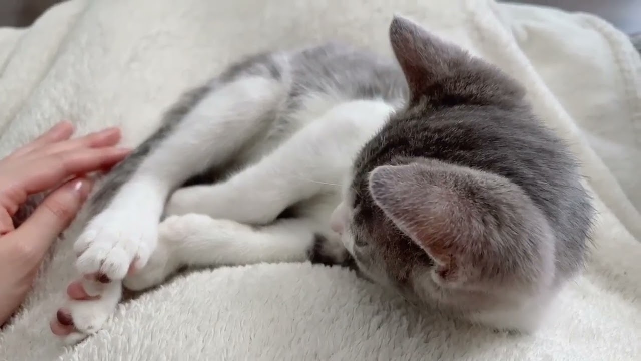 #猫の日 なのでこねこアッシュくんです 実家の猫さんが手足をさわられるのは苦手な子だったのでアッシュくんは嬉しそうにしていてびっくりしました どちらの子もそれぞれ別の魅力があります 最高です