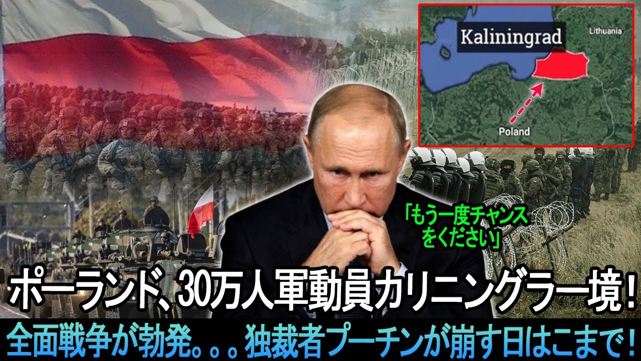 クレムリンは完全にパニックに陥っている。ポーランド、30万人軍動員カリニングラー境!全面戦争が勃発…独裁者プーチンが崩す日はこまで!