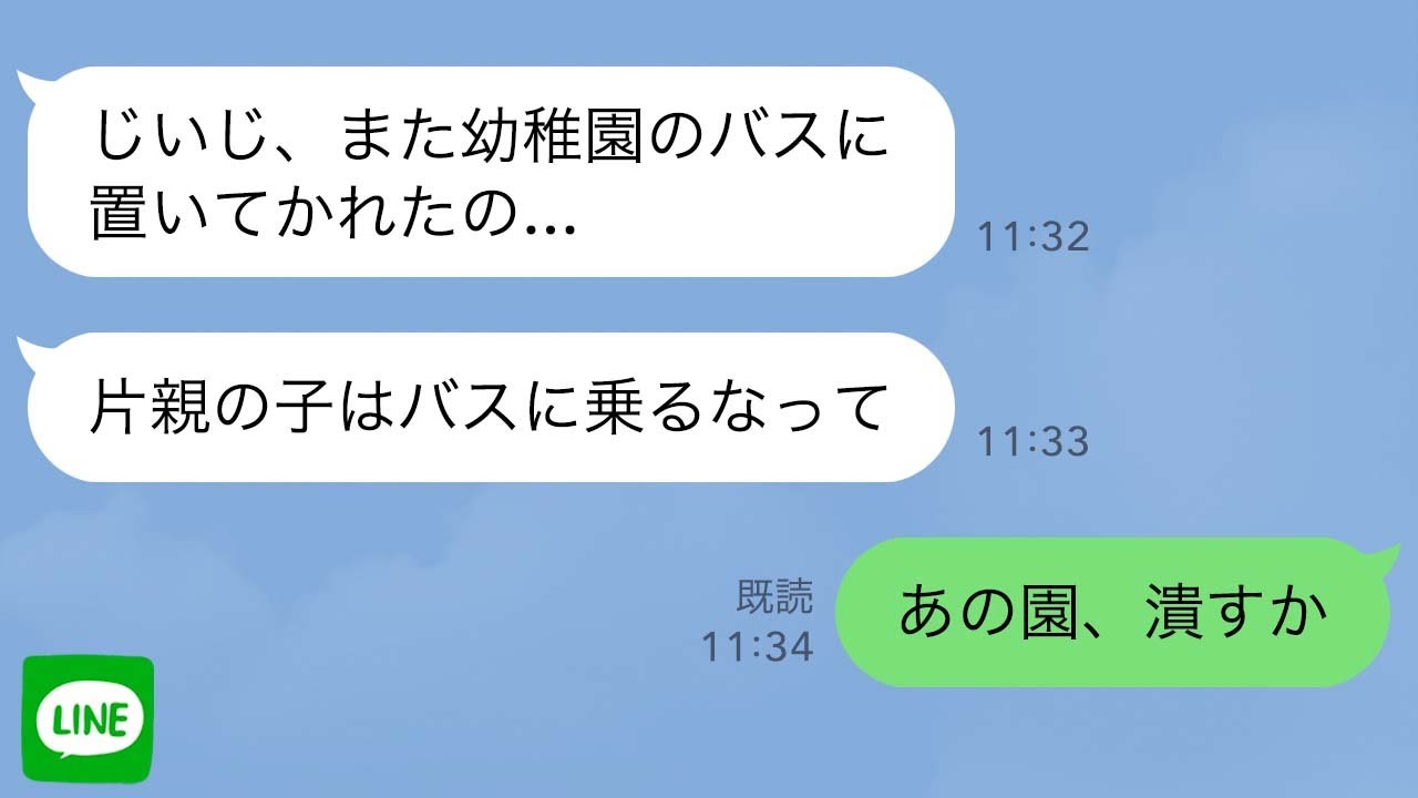 【LINE】毎日幼稚園バスが娘を乗せずに家の前を通過していく→娘が大地主の祖父にラインするとブチギレた祖父が園を潰すかと言い始め…