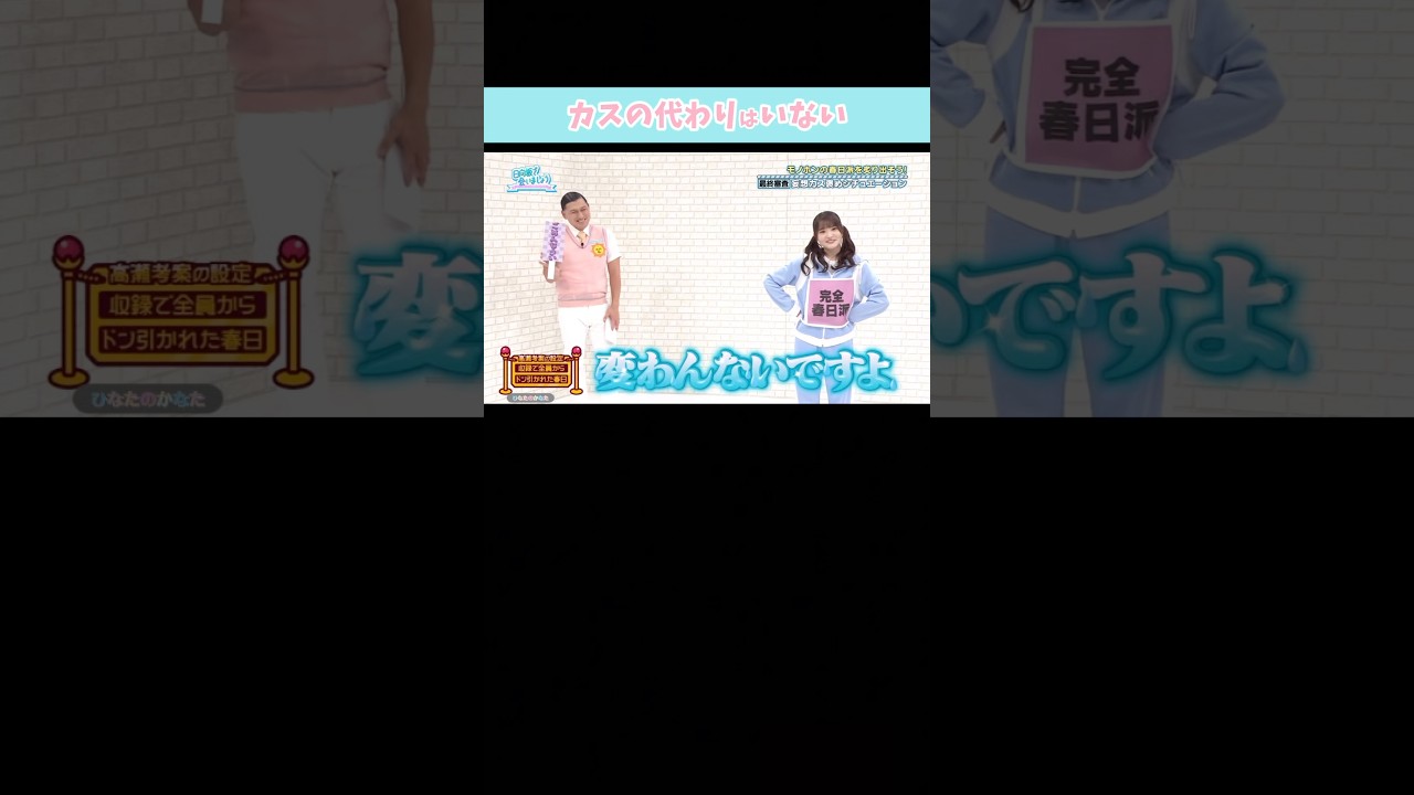 @ああ-x1c5z 8か月 ago (盛ってんで)は高瀬卒業後も継続できると思うけど、春日派企画に関しては、高瀬の春日への愛情からくるワードセンスや挙動がいちいち秀逸すぎて、今後高瀬抜きで似た様な企画をやっても、今迄レベルのクオリティの面白さを保つのは厳しいのではと思ってしまう。それくらい春日派で立ち回る時の高瀬は優秀だった。