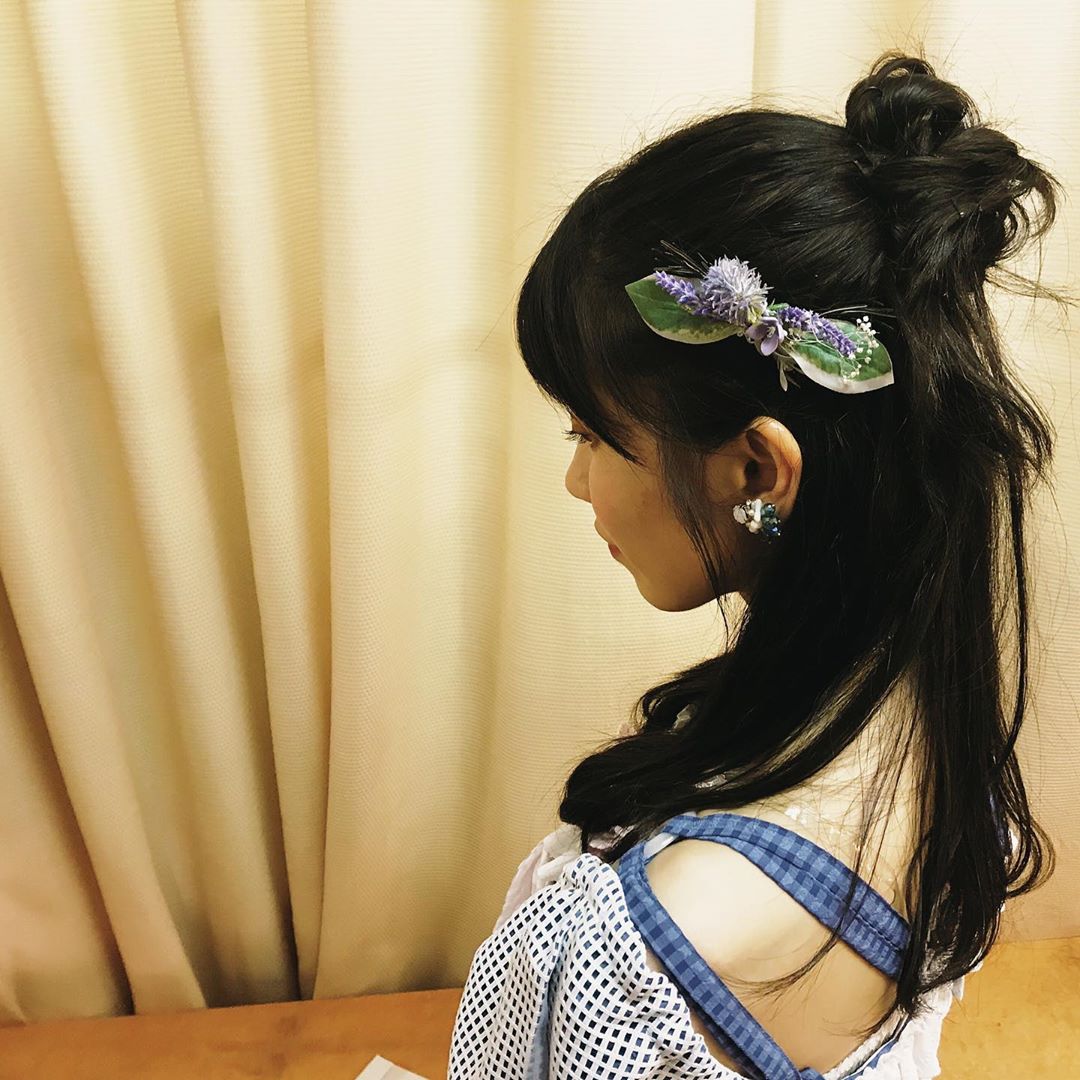 今日の髪型は、 ハーフお団子でした🎑 初めてでしたが お気に入りになったので またやりたいなぁ💇♀️ #AKB48 #サステナブル #ミディアムヘア #ハーフお団子 #yui_yokoyamaakb48Yokoyama YuiYui Yokoyamaサステナブルハーフお団子ミディアムヘア横山由依