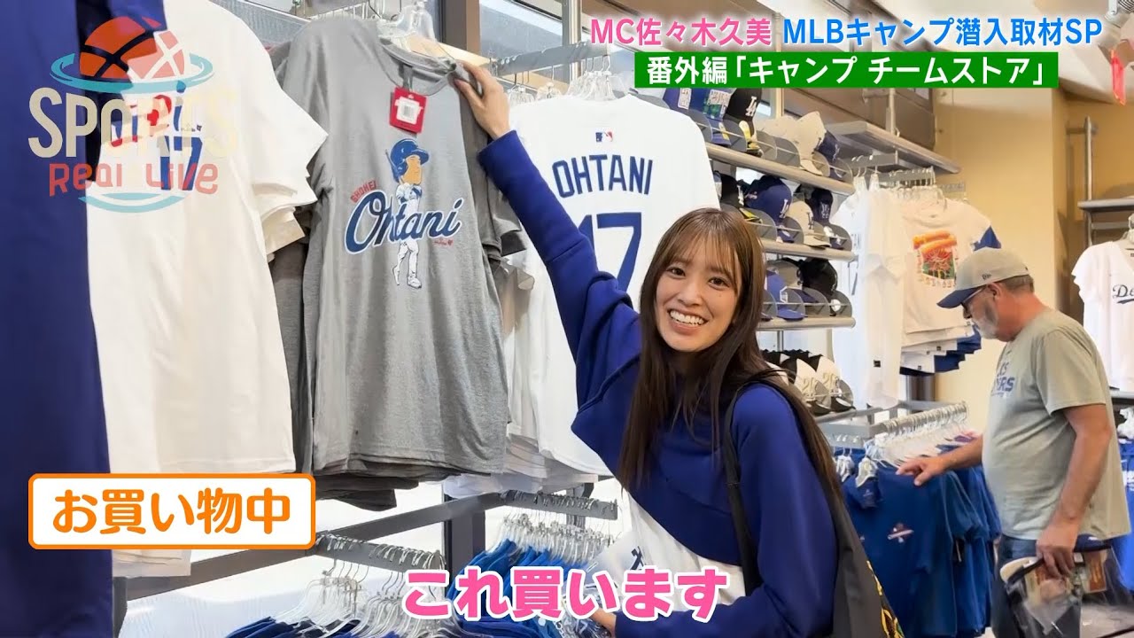 キャンプチームストア編では、ドジャースの人気アイテムに佐々木久美大興奮!