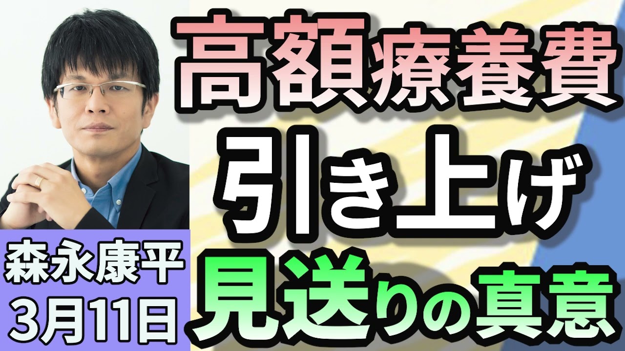 森永康平「高額療養費の引き上げ見送りを表明」「年金法案提出を先送りへ、参院選控え負担増に慎重姿勢」「高校無償化どうなる?予算を通すため?大阪は公立離れ」3月11日