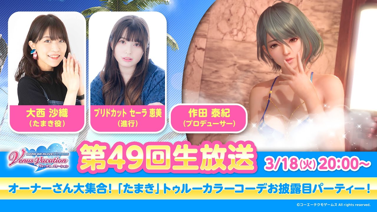 PC用ゲーム『DEAD OR ALIVE Xtreme Venus Vacation』公式生放送です。
