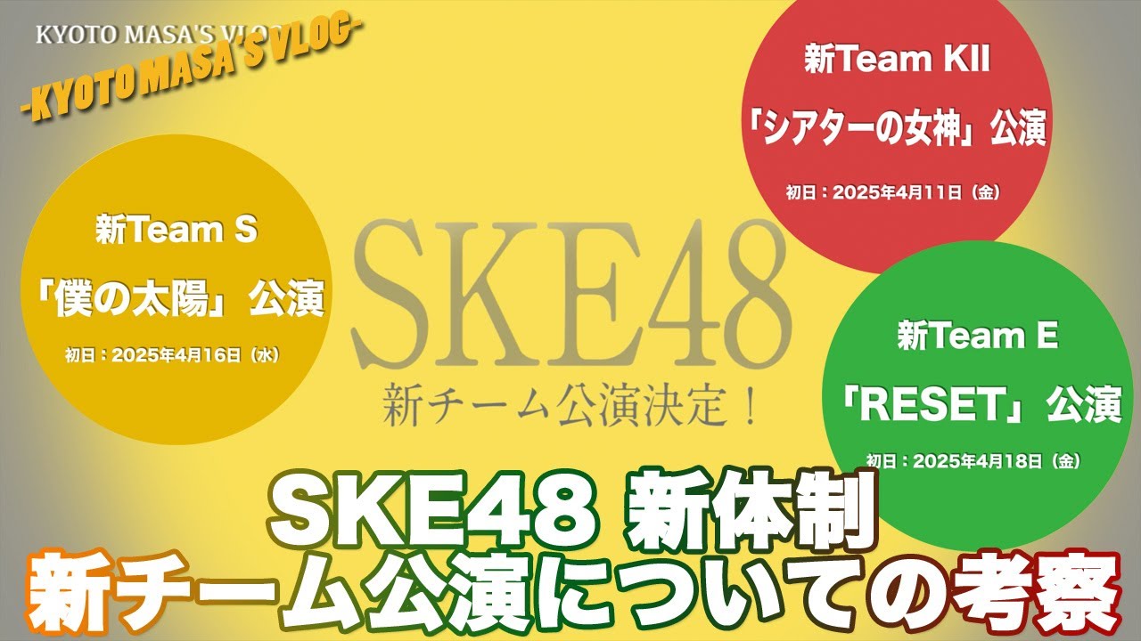 SKE48 新体制 新チーム公演についての考察 Kyoto masa’s vlog 3月17日に新チーム公演の情報解禁がありました。 私の考察を動画にしてみました。 あくまでも私個人の考察ですのでご理解ください。 ●公式チャンネルの情報解禁配信 #ske48 BGMはおとるん♪さん使わせてもらってます https://www.youtube.com/@UC6bstGu50m84HBLslUi-R1Q #岩立沙穂idolアイドル Write A Commentコメントを投稿するにはログインしてください。