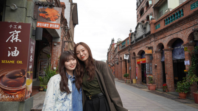 「三狭老街」では、レンガ造りの街並みを散策し、石鹸屋さんや味噌屋さんでショッピング。身長差も相まって、まさに本当の姉妹のような2人。前編はここで終了となるが、初めての2人旅でグッと距離を縮めた1日となった。