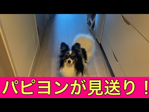 【柴犬飼い主55歳】柴犬ばかりかまっていたらパピヨンが先に見送りにきた!