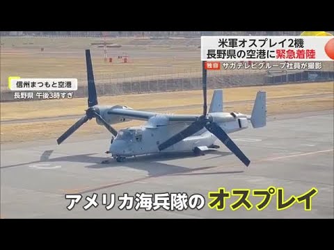 アメリカ海兵隊のオスプレイ2機が長野県の空港に緊急着陸。その様子を出張中のサガテレビグループのカメラマンが撮影しました。オスプレイは陸上自衛隊が運用する17機が今年7月以降順次佐賀空港に配備されます。
