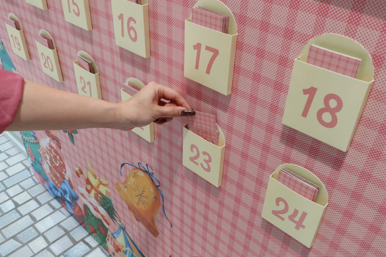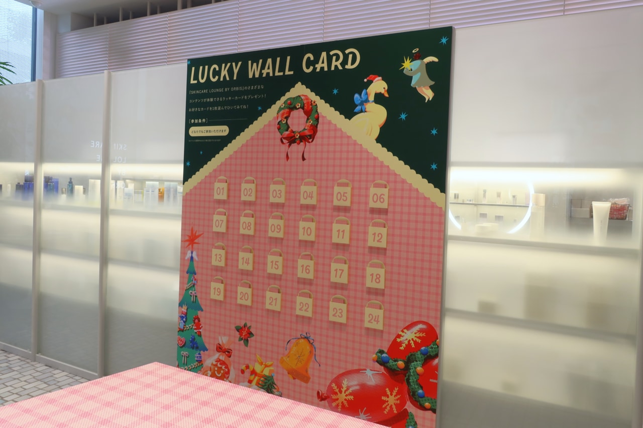 施設内1階の奥には、体験型プレゼントが当たる『LUCKY WALL CARD』が設置されています。こちらは誰でも参加でき、好きなカードを1枚選ぶと『SKINCARE LOUNGE BY ORBIS』の体験型プレゼントやクーポンが当たります。