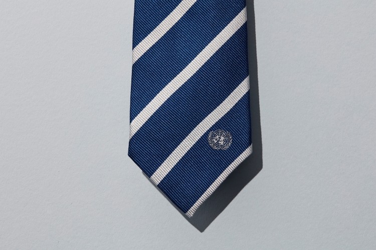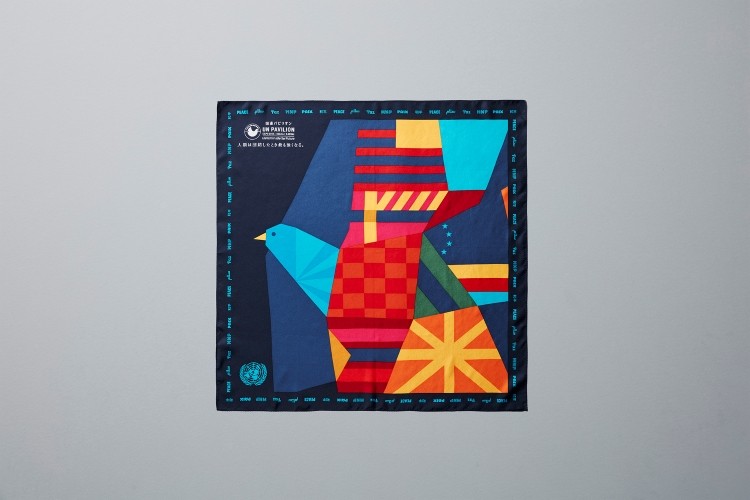 メンズのネクタイには、国連ロゴをあしらったブルーベースのレジメンタルタイを制作。素材には上質なシルク100%を採用。ウィメンズのスカーフは、コーディネートを華やかにするアクセントとして、平和の鳩をモチーフした国連オリジナルスカーフをリバイバルし、国連パビリオンロゴをあしらっています。上質なシルク100%の素材です。
