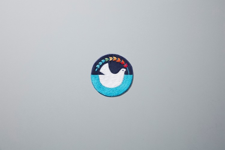 ジャケットの胸元には、難民による手工芸品ブランド「MADE51」*が手掛けた国連パビリオンロゴワッペンをあしらっています。ロゴは、オリーブの枝を運ぶ白い鳩をモチーフにしており、オリーブの枝の葉部分には、持続可能な開発目標(SDGs)のゴールカラーをイメージしたデザインを採用しています。今回はアフガニスタン難民を中心にした職人が制作。オリジナリティやファッション性はもちろん、この取り組みを通じて難民の自立支援に貢献したいという思いを込めています。