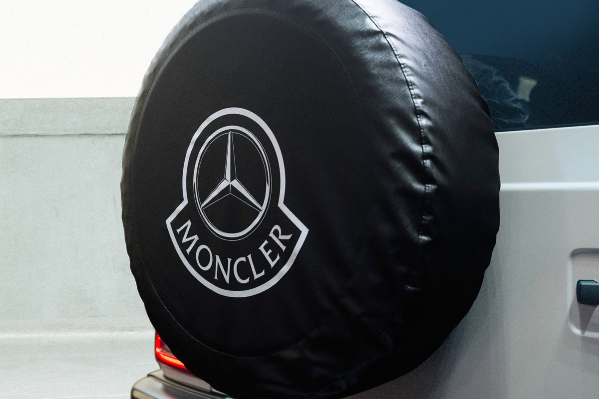 ブラックで統一されたウィンドウフレーム、18インチホイール、メルセデス・ベンツとモンクレールのコラボレーションロゴが入ったスペアタイヤカバーなどが特長的だ。