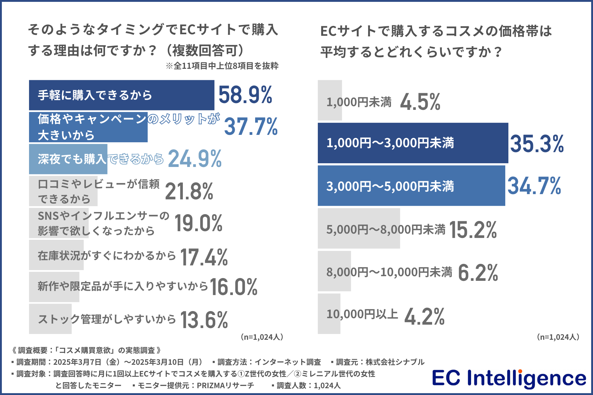 ▲ECサイトで購入する理由・購入するコスメの平均価格帯
