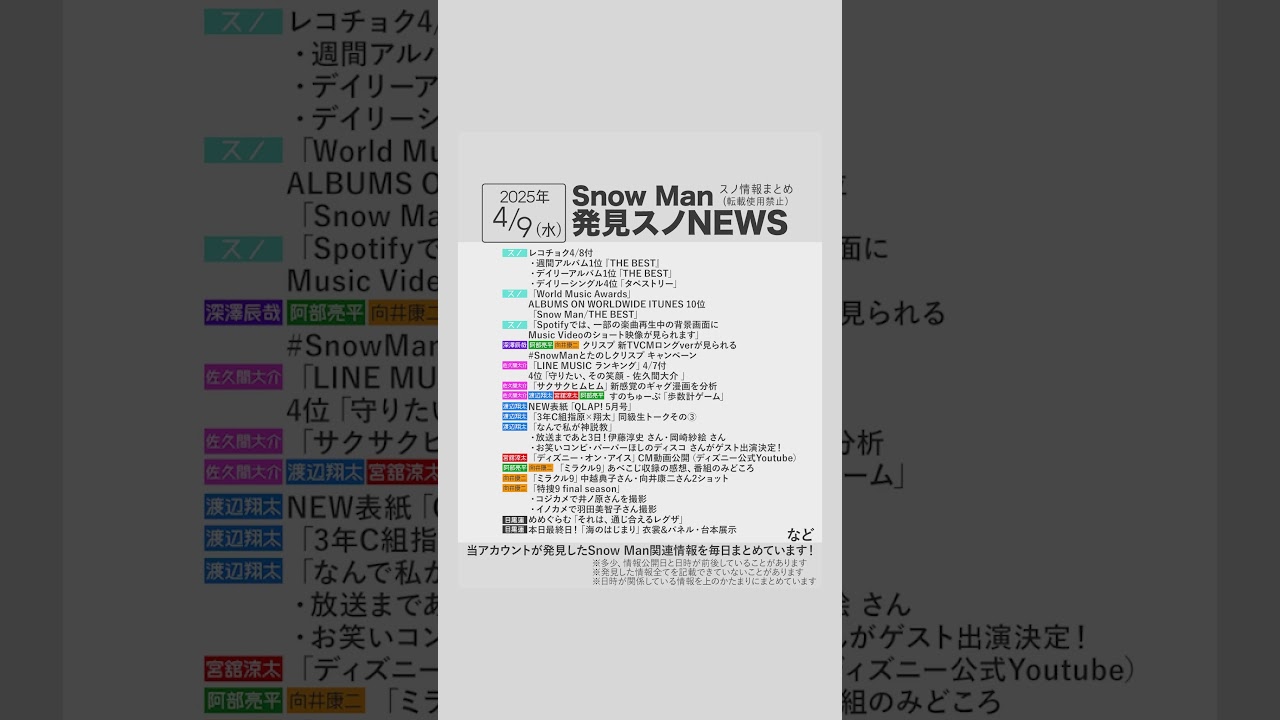 <スノ情報まとめ⛄️Snow Man最新情報まとめSnow Media>