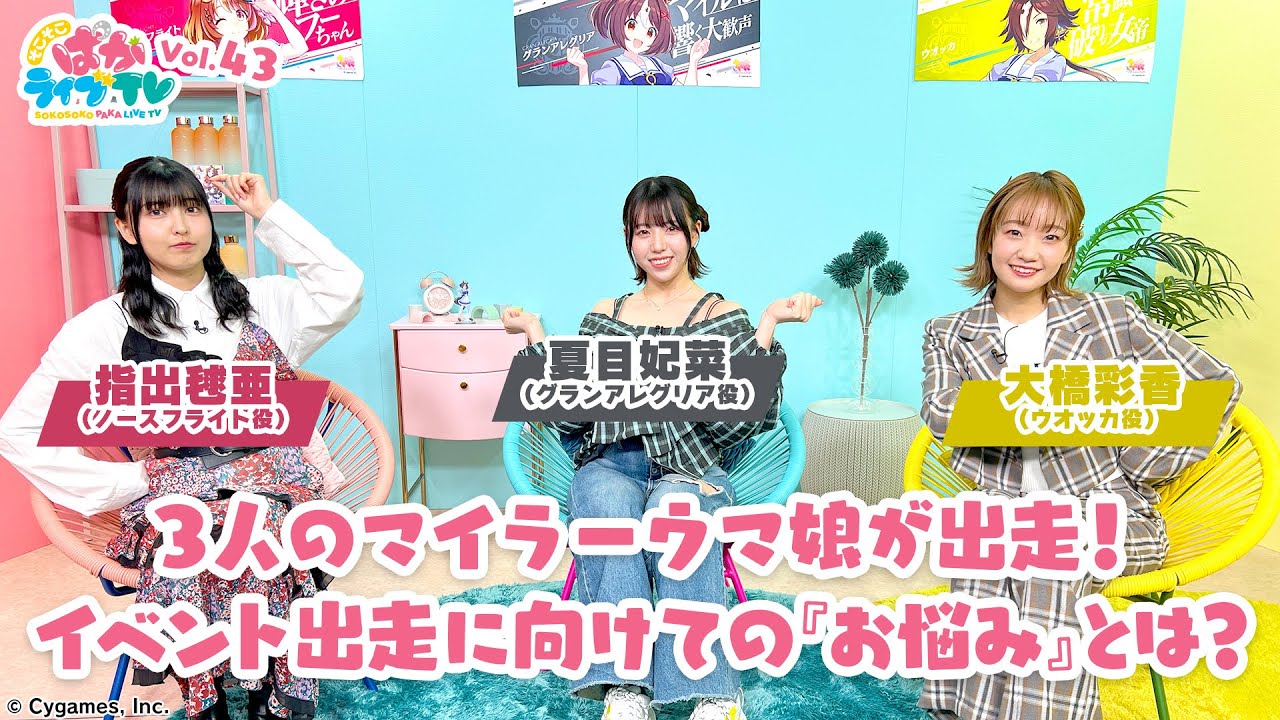 今回は全員がマイラーウマ娘役の大橋彩香さん、指出毬亜さん、夏目妃菜さんの3人がそこそこウラ話をお届け!
