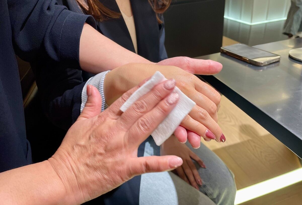 美肌菌を育成するためのおすすめアイテムも、もちろん教えてもらえます。今回紹介していただいたのは、クレ・ド・ポー ボーテの日焼け止め「クレームUV n」と美白美容液「セラムコンサントレエクレルシサンn」、そしてザ・ギンザのマッサージ美容液「ハイブリッドジェルオイル n」。