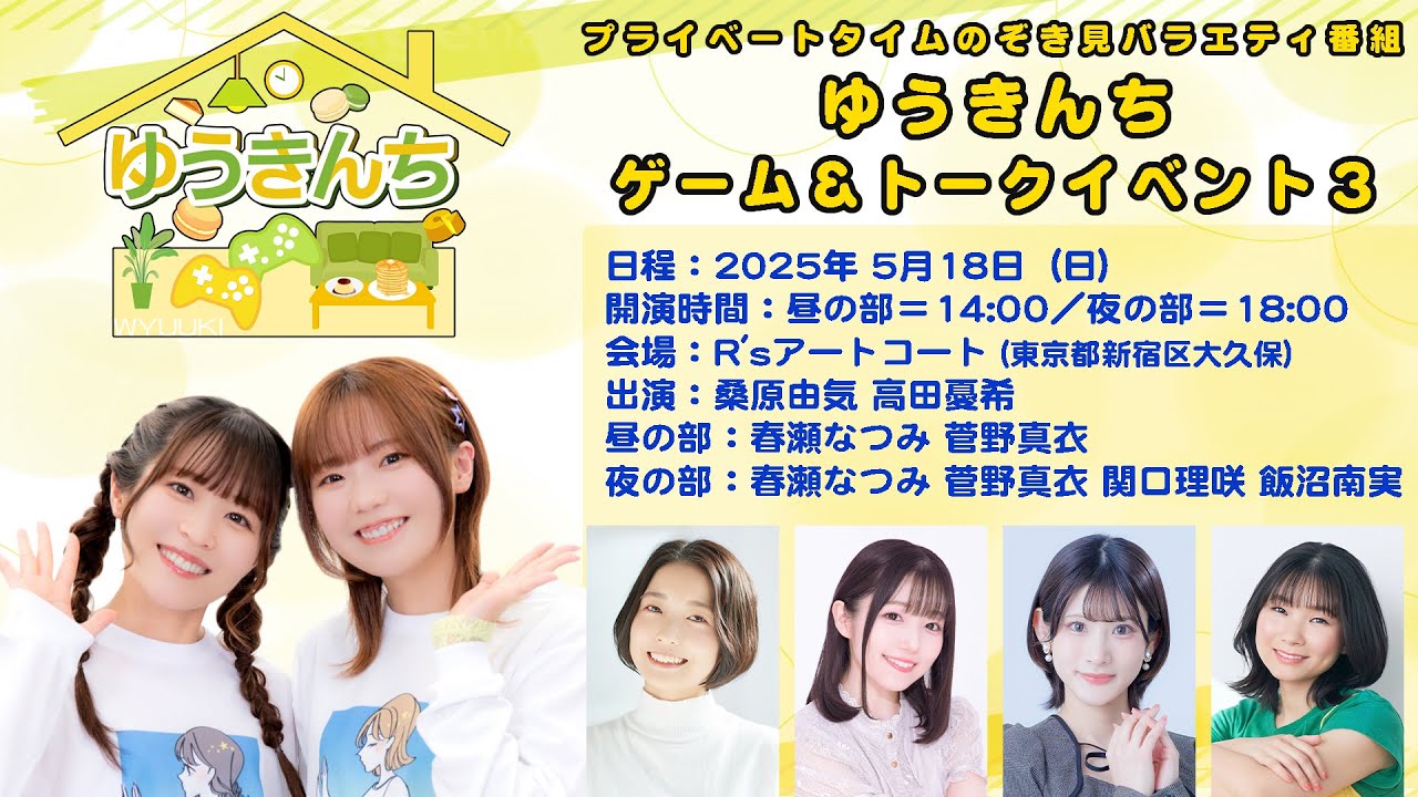 2025年5月18日(日)に『ゆうきんち ゲーム&トークイベント』単独第3弾の開催が決定しました!会場はR’sアートコートで、2部制でお届けいたします。