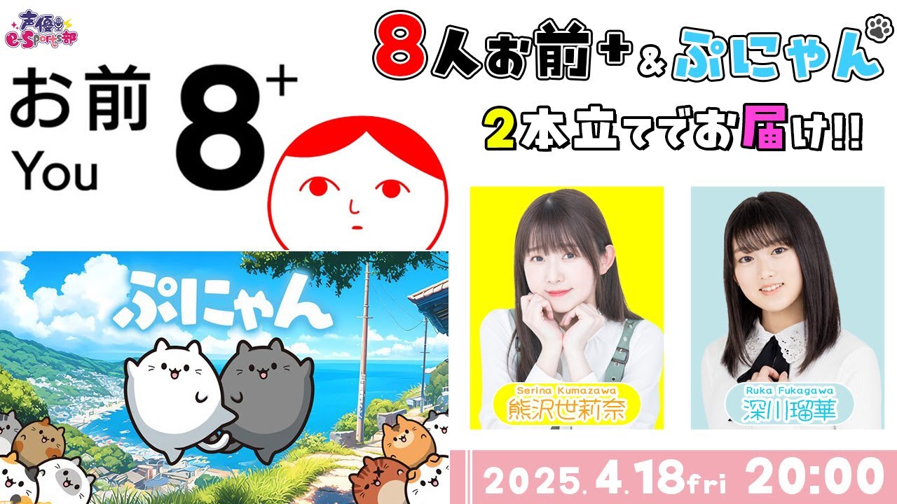 2本立てでお届け!楽しんでいこう!【8人お前+】【ぷにゃん】深川瑠華・熊沢世莉奈【声優e-Sports部】
