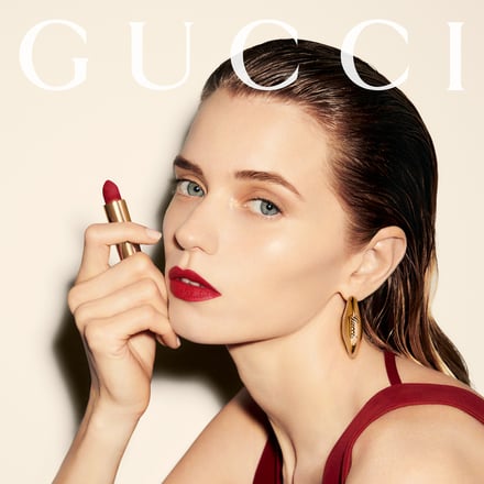 グッチ ロッソ アンコーラは、グッチを象徴する深みのあるレッドで、19世紀後半にブランド創設者グッチオ・グッチがポーターとして働いていたロンドンのザ・サヴォイ ホテルのエレベーターなどを着想源として生まれ、さまざまなファッションアイテムに取り入れられている。昨年、ビューティアイテム初の“グッチ ロッソ アンコーラ”カラーが、グッチ ルージュ ア レーヴル マットから登場した。