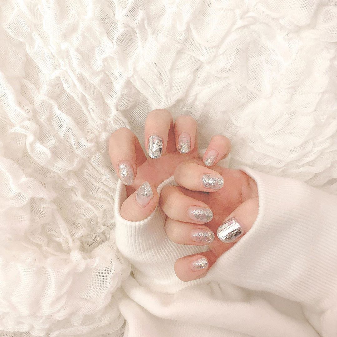 . 💿💿💿 . new nail👼🏻 . キラキラにしたくてシルバーネイルしました💿❤︎ ブロンズのラメも散りばめてもらえたのでキラキラ超えてギラギラネイルです🥰 . #nails #handnail #キラキラネイル #シルバーネイル #ラメネイル #orin_mutoakb48handnailMuto OrinnailsOrin Mutoキラキラネイルシルバーネイルラメネイル武藤小麟
