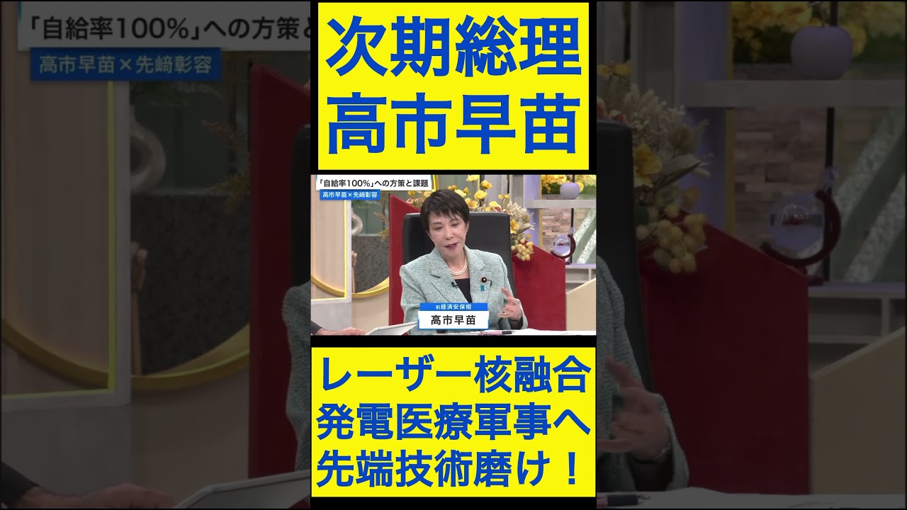 高市早苗切り抜き14 レーザー核融合、発電医療軍事へ先端技術磨け! #shorts