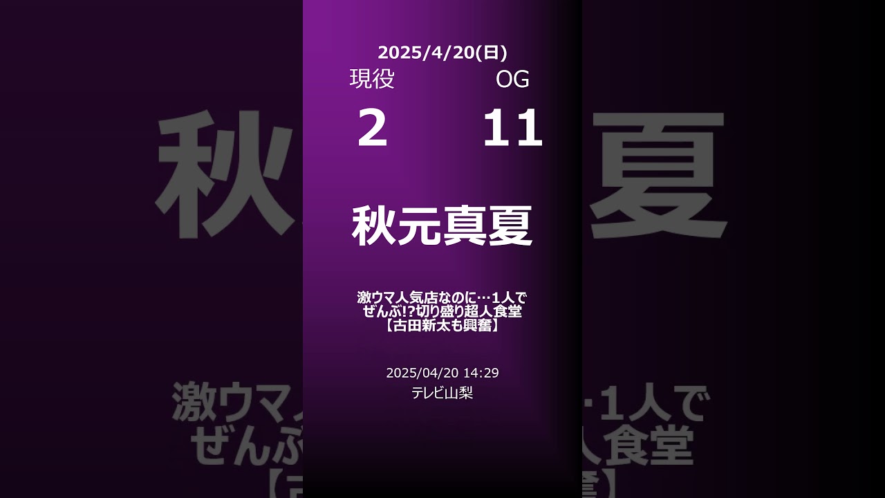 2025/04/20の乃木坂46と乃木坂46OGのTV出演情報です