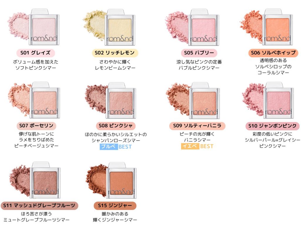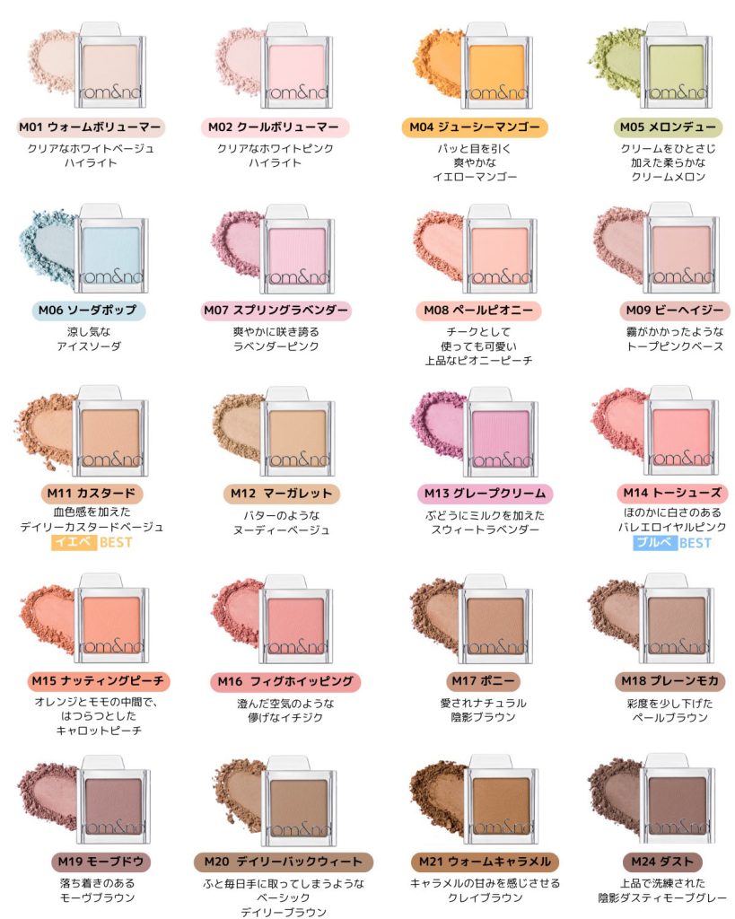 韓国コスメブランド「ロムアンド(ROM&ND)」は4月19日、シングルアイシャドウ“スライドインシングル”(全36色、各693円)を全国のロフト(LOFT)、プラザ(PLAZA)、アットコスメ(@COSME)で発売する。リップカラーで人気を博してきたブランドが初めて本格展開するアイシャドウコレクションで、日本上陸にあたり韓国で販売している50色から人気の36色をラインアップした。