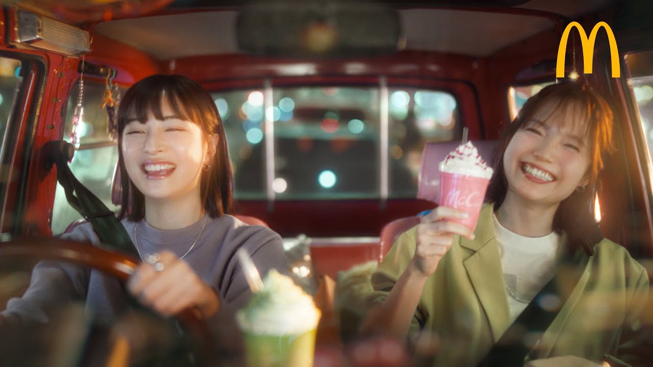 それに伴い、4月1日から放映予定の新TVCMでは、McCafé🄬のアンバサダーを務めている広瀬すずに加えて、宮﨑あおいが登場し、姉妹役としてMcCaféのCMで初共演。PUFFYの名曲「これが私の生きる道」の本人歌唱の替え歌に乗せ、“寄り道マック”して、期間限定の「いちご練乳フラッペ」と「宇治抹茶フラッペ」を夜のドライブで楽しむ二人に注目。