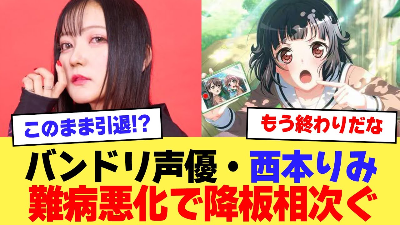 【悲報】バンドリ声優の西本りみさん、バセドウ病悪化により全ての出演作品から降板相次ぐ…【2ch】【5ch】【声優】