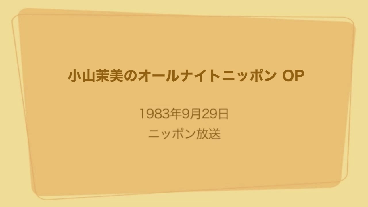 小山茉美のオールナイトニッポン OP 1983年9月29日 1983年9月29日(木) 3:00〜5:00 ニッポン放送 1983年7月から85年3月まで毎週木曜(水曜深夜)に放送。 パーソナリティは声優の小山茉美さん。 この日、1部のタモリさんは最終回でした。 female voice actorsvoice actorsvoice actresses声優女性声優小山茉美 Write A Commentコメントを投稿するにはログインしてください。