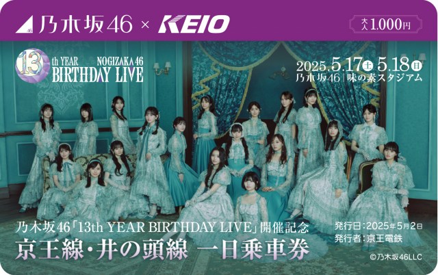 アイドルグループ・乃木坂46が『13th YEAR BIRTHDAY LIVE』が味の素スタジアムで開催されることを記念して、京王電鉄とのコラボレーション企画「乃木坂46×京王電鉄」として5月2日から18日まで実施することが発表された。