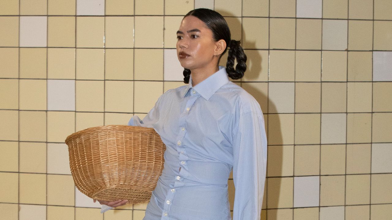 シェルソンは今回、「Farm(農園)」と題したコレクションを地下鉄や路上といった都会的な場所で披露し、興味深い二律背反を生み出した。彼女はモデルたちが田舎に住んでいるところを想像し、「アップサイクルでやっているように、すでにあるものから服を作る様子」を捉えたかったという。