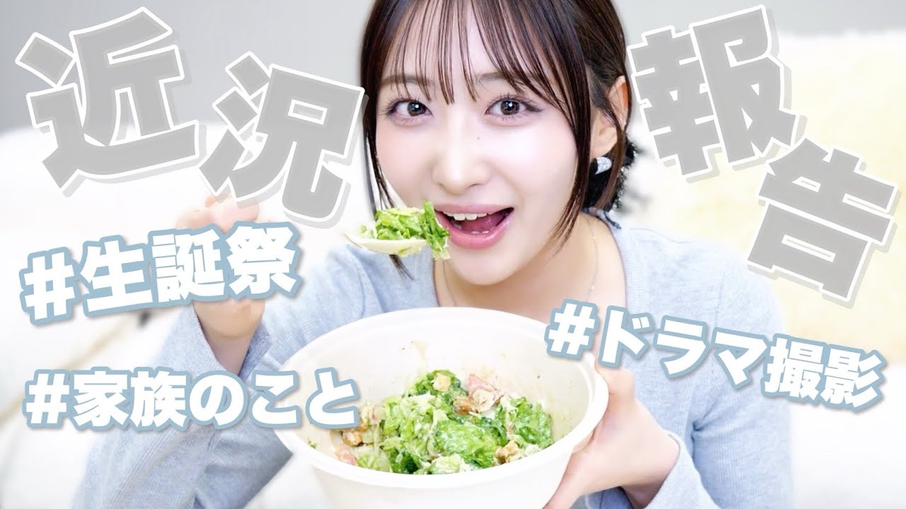こんにちは。石川カレンんです。今日は ですね、ここ12ヶ月のことをいっぱい 話しながらお昼ご飯を食べたいと思います 。今日はですね、サラダをね、買ってきて いただいたのでサラダを食べたいと思い ます。本当はね、焼肉弁当とか食べたい ところなんですけれども、中でして、今日 はこれをお願いしますってお願いしてやっ てきていただいたんですけれども、私の 大好きなサダさんクリスプラダワークスで ございます。見て、サーモンアボカド シーザーサラダです。美味しそうじゃない ?ナフのサーモン時すごい好きだったん ですけど、ちょっと最近苦手意識があって 、でもここのサーモンって焼き鮭けみたい な感じになってて火が取ってるんですよ。 生物苦手な方でも食べられるサーモンです 。ドリンクはアイスイバスティ。ここ12 ヶ月が本当に色々ありすぎてお話しするの は3月あたりのことなんですけど、まず3 月最近情報会禁になりましたバンプと ドラマボックスのアプリで配信される ジャイ40話のショートドラマあなたの ことが死ぬほど嫌いですというドラマの 撮影がありました。全部で7日間本当1 週間とかで取り終わりだったんですけど やっぱり顔回り何にもなくてまるちゃんが いました。本当に7日間とかで1040話 取り切ったんですけど、この撮影が結構 ハードでもすごい楽しかったんですけど、 色々起きたんですね。不みたいなことが 起きて本当にとある1日完全にハウス スタジオを抑えて撮影しようってなってた んですけど朝制作さんとか機材者が入って いって機材を搬入しようかってなってる時 にマンションの管理人さんが何されてるん ですかって声をかけてきたみたいで絵よ 今日は撮影でこの羊を借りするってお話な んですけどってなったらドラマのスタジオ 貸し出ししてくれるスタジオを借りてる 部屋の主とマンションの主が別の人たちで マンションの主と部屋の主で話し合いが できてなくてスタジオを利用することが まず許されてなかったみたいなのに スタジオしますって言ってもう料金も 支払いして1日確保してたから取れないっ てなってまず交板組み直しなんですよ。 本当に制作の皆さんが大変だったと思うん ですけど、そっからも血ま子になって当日 使えるハウススタジオイメージにちゃんと あったスタジオを探すところから始まって ちゃんと夕方には確保できてそれまで じゃあ月日に撮ろうとしてた外のシーンと かを取ろうかっていうのでこの道路使いた いっていう許可を取ったりとかていう ところから始まった日があって本当に大変 だったんですよ。大変なことが起きると こんなにも断結力が上がって思い出にも 残るものになるんだなっていうのをすごい 実感してめっちゃ思い出に残る撮影になり ました。私今回谷口水役なんですけど 初めてされ妻なんです 。結婚経験もないんですけれども、女優 って面白い仕事で他人の人生をね、何回も 何回もこう生きれるお仕事なんですけど、 大好きな最愛の夫に浮気をされるっていう 。自分の親友だったり、同じマンションの 住人だったり、職場の後輩だったり、身近 な人をいっぱい責められるんですけど、ま 、そんな旦那に復讐をするのか、浮気を 突き出すのか、またまた心的に支え続ける のかっていう選択を迫られた奥さんなん ですけど、めっちゃ面白いので絶対見て 欲しいですね。結構ね、40話あるって 聞くと普通のね、ドラマとかって1本30 分くらいなのが9話、10話、11話とか だと思うんですけど、ショートドラマ本当 に短くて1分のものから長くて2分とかな ので、ちゃちゃっと40話は見割われ ちゃう感じなので、是非ショートドラマ今 まで見てこなかったよって初心者の方にも おすめな入り口かなって思います。じゃ、 いただき [音楽] ま、美味しい。お家でサラダ食べ るってなるとありえない量のドレッシング をかけちゃうから結局カロリーどうなのっ ていう話じゃないですか。それならなんか シンプルに和食食べた方がいいのかなとも 思ってくるんですけどこういうお店の ドレッシングってきっと栄養師さんとかお 店の方がたくさん試作をしてこのサラダに はこの量のドレッシングだろうって決めて くれてる量があるじゃないですか。なんか 罪悪感なく食べれるんですよね。しかも 絶妙じゃないですか。薄くもないかと言っ てしょっぱくてあまりもしないっていう 天才企業努力に感謝です 。あとは3月はまだお知らせできてないん ですけど、この動画を撮ってる段階では1 本ショートドラマともう1本ショート ドラマじゃないドラマの撮影があって、 これもま、公開されてから近いうちにお 知らせできるかなって感じですね。で、 これ1番大事。3月30日、22歳の お誕生日会がありました。ありがとう ございました。皆さん本当にでも私人生で 初めて涙を流さない生誕祭になりました。 なんでかっていつもはオフショットを先に 取るんですね。でもその日はなんか準備の 時に盛り上がっちゃって