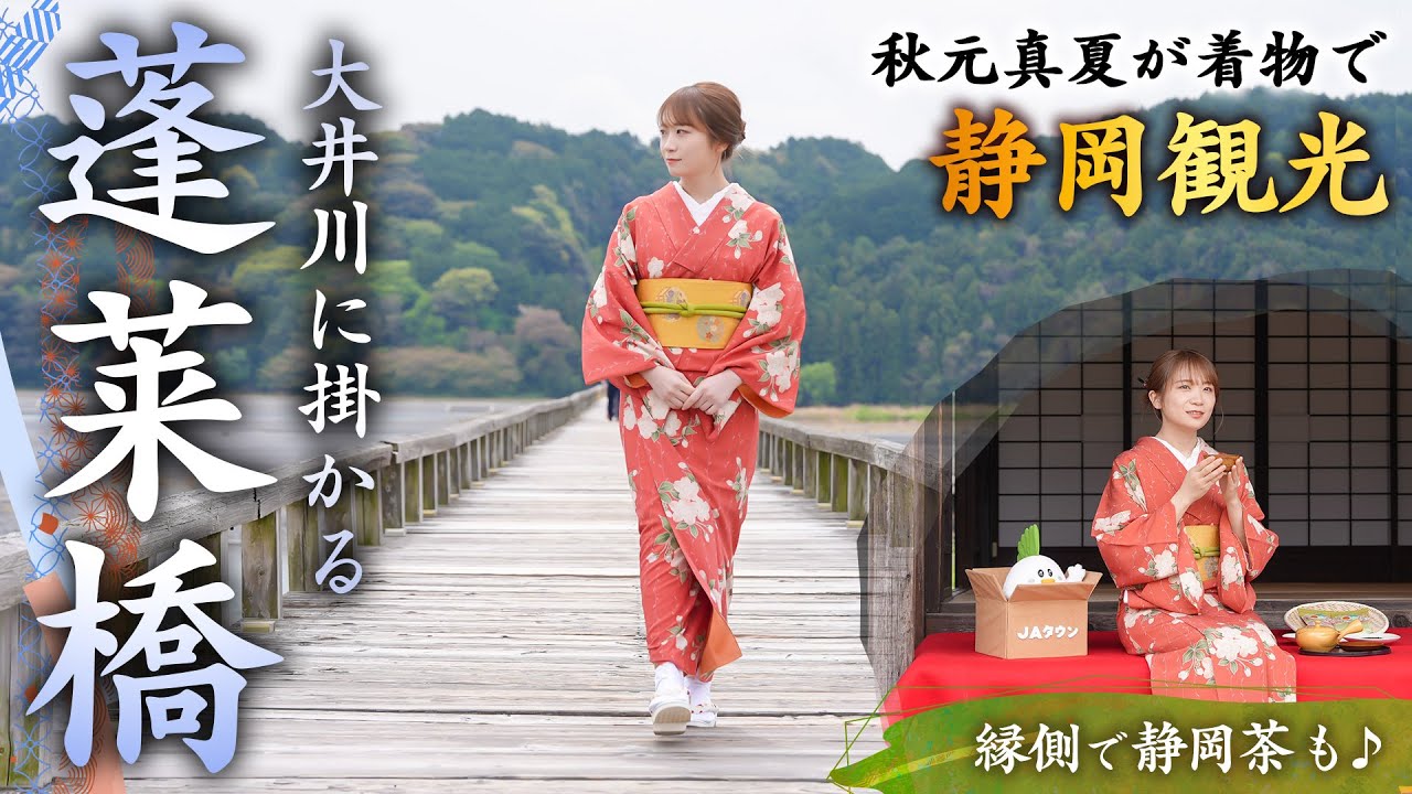 秋元真夏が着物で静岡観光!世界一の長さを誇る木造歩道橋「蓬莱橋」を観光して静岡茶を飲み比べ!