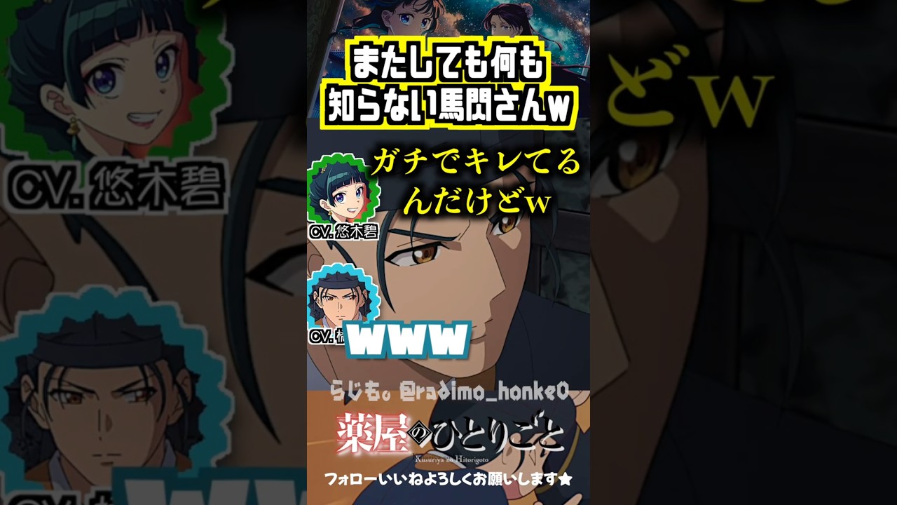 【薬屋】またしても何も知らない馬閃さんww #悠木碧 #橘龍丸