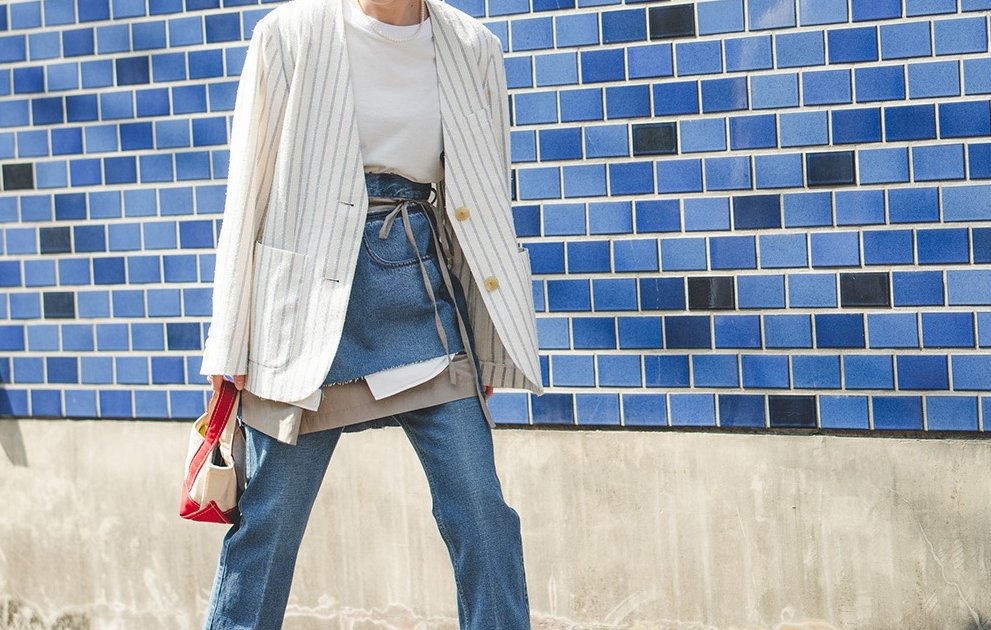 スカート×パンツの新鮮なデニムオンデニムスタイルに挑戦!