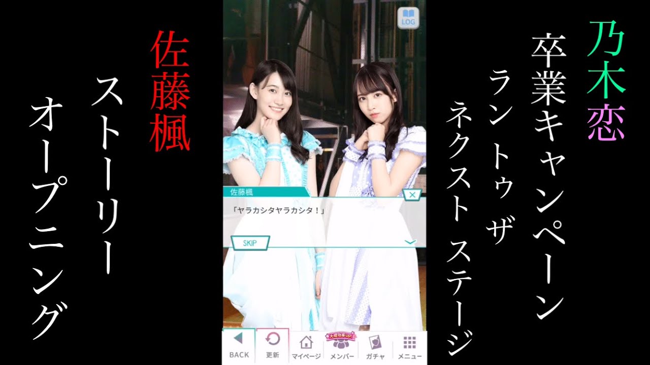 乃木恋にて先日まで開催されていた佐藤楓さん、中村麗乃さんの卒業を題材としたキャンペーン「Run to the next stage」の佐藤楓さんのオープニングストーリーのプレイ動画になります。