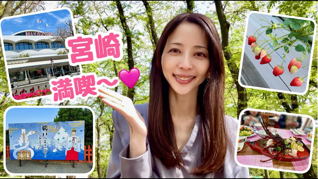 【三宅梢子】 地元満喫!宮崎での様子をお届けします♪ #宮崎県 #春休み #帰省 #vlog #いちご狩り #ゆいまーるFARM #伊勢エビ #海の幸 #美味しい #鵜戸神宮 #運玉 #西都原古墳群