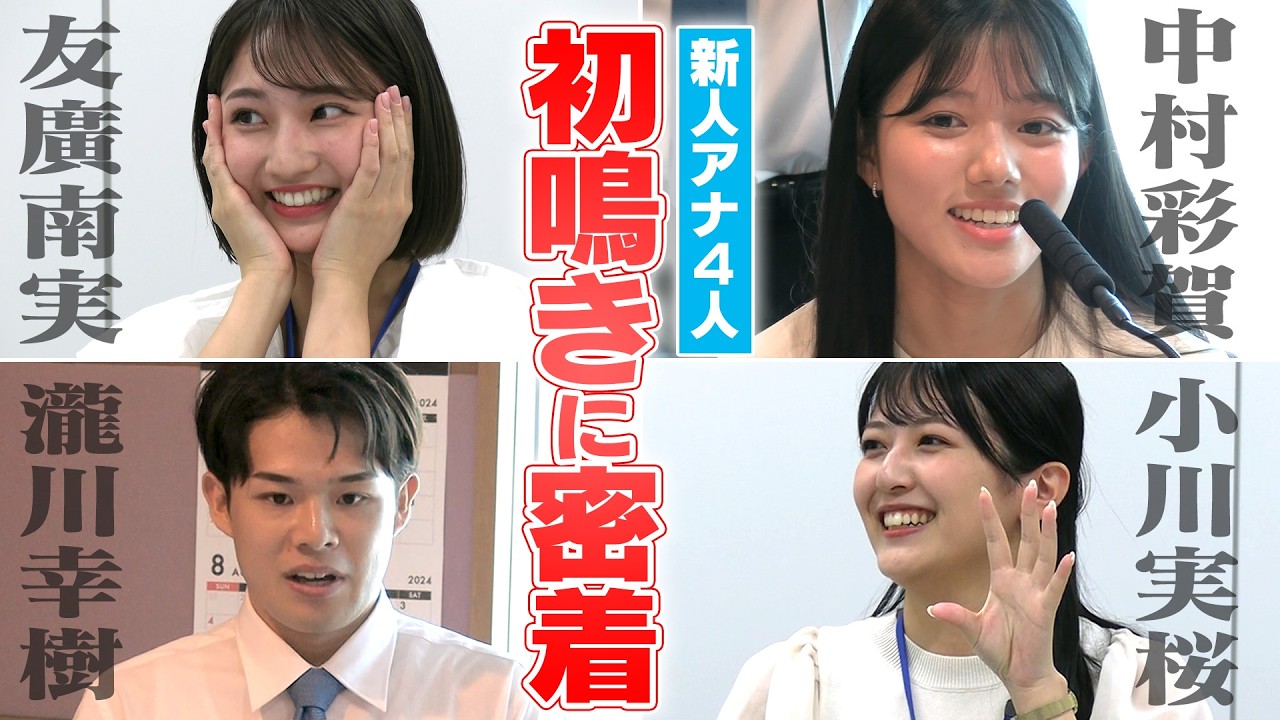 先日チャント!(テレビ)・つボイノリオの聞けば聞くほど(ラジオ)にて「初鳴き」を終えた新人アナウンサーの4人。その当日の現場・放送の様子に密着しました!デビュー当日の様子だけでなく、オンエア前後の彼らの緊張の様子もお届けします!テレビの初鳴きの前日には「あるミッション」も?先輩・若狭アナの試験が!?初々しい彼らをぜひご覧ください!