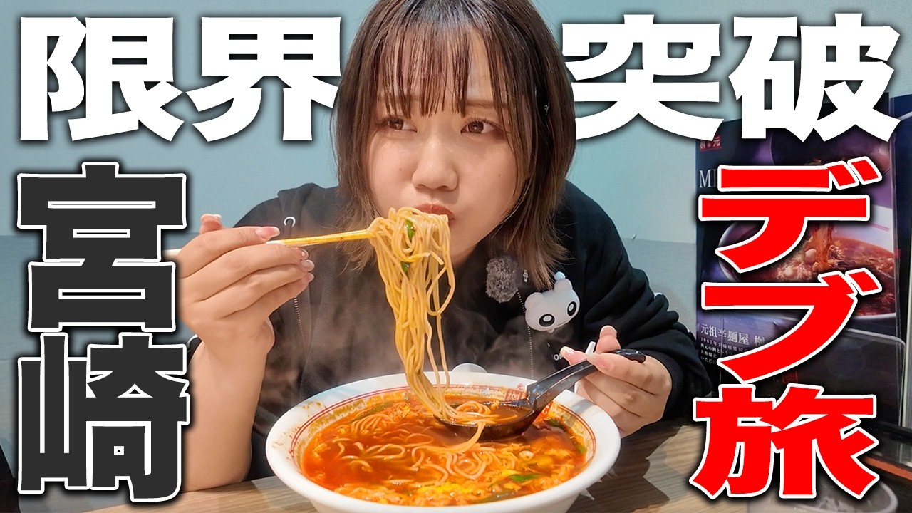 夜は地鶏、メヒカリの唐揚げを焼酎(霧島か木挽で、スナックをハシゴして〆はフルーツ大野でマンゴーや釜揚げうどん(ミスドは地元民が家族のお土産で買いますね〜)朝は宮崎のやわやわうどん、昼はおぐらのチキン南蛮、おやつに蜂楽饅頭かな〜😅お土産は丸岡の餃子をテイクアウトで買って家で食べるのがオススメです😅 後はスーパーとかで戸村の焼き肉のタレ、高千穂峡の麺つゆ、マキシマムってスパイス、チーズ饅頭買えば完璧ですね〜😅あぁ辛麺はコンニャク麺で食べるのがマストですよ〜余りに辛いの食べると次の日のトイレでお尻がヒリヒリしますよ〜(笑)