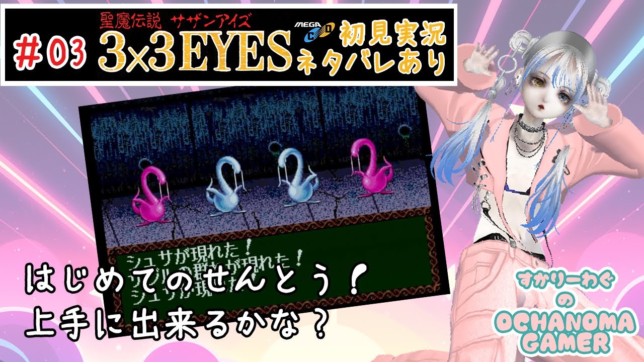 03【聖魔伝説 3×3EYES】はじめてのせんとう!上手に出来るかな?【OCHANOMA GAMER】【サザンアイズ】【完全初見実況プレイ】 メガドラ メガCD Vtuber