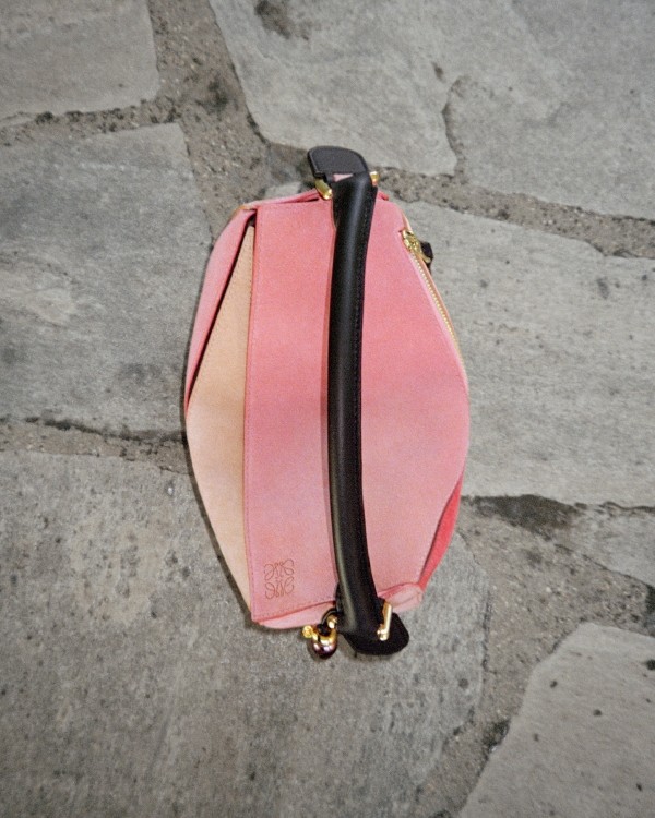 手仕事で作られるパズルバッグは、折り紙を着想源としており、巧みなクラフトによって生まれる一見折りたたむことができそうなその構造から、ロエベにおける無二のクリエイションとなっています。先行するメンズコレクションでその原型を発表し、2015春夏ウィメンズランウェイでデビューを飾ったパズルバッグは、無数の素材やデザインで再創造され、パズルバッグ シリーズやアクセサリーへと展開を拡げました。