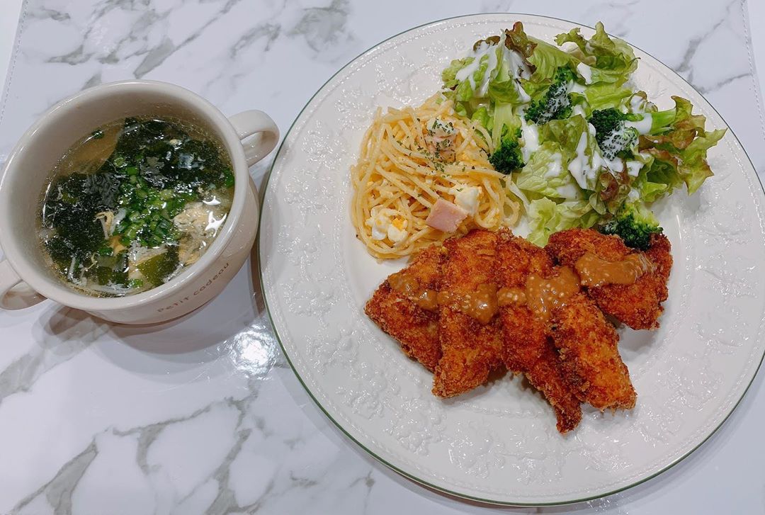 #れーなご飯 #おうち時間 #料理 #クッキング #チキンカツ #中華スープ #スパゲティサラダ #photo #Instagram #instagramjapan #cooking