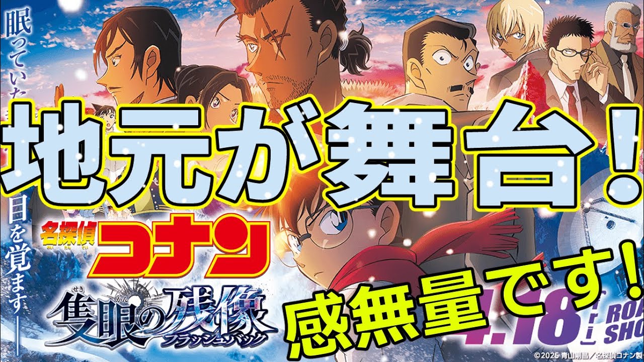 お暇なら映画でも すぐの新作映画レビュー劇場版名探偵コナン石眼のフラッシュバックということで地元が舞台どうも菅です。え、長野県長野市出身菅完全に地元が舞台のコナンでした。地元が舞台ということで今回ですね、久しぶりに僕はコナンの映画を見に行ったということです。 [笑い] お前今までコナン無視してきたじゃねえか と思われるかもしれませんけれども、僕 自身はですね、コナンは一応言うとテレビ アニメは第1回目からずっと見ていました 。ある時期までね、ある時期まで見てい ました。で、え、単鉱本はですね、その テレビアニメ開始ぐらいの頃からずっと 集め続けて、72巻までは持っていました 。72巻を買った以降ですね、なんか めんどくせえなということで、もう完結し たらまた買うわということで、え、そこで ストップしていたんですね。という状況 だったんで、ただ今回ね、石眼の フラッシュバックが、え、我が地元長野県 が舞台ということで、これは見ないわけに はいかないでしょうということで、単鉱本 も読み直してですね、最新刊まで読み直し て長野県シリーズ全部読んでですね、黒の 組織関連も全部読んでですね、で、テレビ アニメも長野県シリーズをね、 ピックアップして一応全部見たということ をしてみました。あのNetflixでね 、長野県シリーズを抜き出して全部見れ るっていうのがあったんで、そこで見まし た。えっとですね、ま、地元が舞台という ことだったわけですけれども、その長野県 シリーズで言うとですね、典型の黒い闇 ですよね。長野県の黒い闇。あの貝が 土近所です 。菅の実家のもう土近所ですね。川中島の 古戦場あたりを舞台にして、ま、山本カ介 、山間のね、お墓とかそういったのがこう 出てきた回ですけれども、まあ古戦場は もう本当に土近所ですね。え、チャリンコ で、あの、もう僕の実家からチャリンコで 行ける距離ですね。川中島の古戦場 チャリンコで行ける距離だし、なんなら僕 の母親の実家が川中島町というあの川中島 の古戦場のもう近所のに、え、僕の実家、 実家じゃないや、僕の母親の実家がある ような感じのところでめちゃくちゃ近所 でした。で、今回のコナンは、ま、予告の 段階ではね、の延山の国立点問題が出てき たりとか、あと八ヶ系のなんか山とか、え 、そういったところが出てくるということ で、ま、長野が舞台とはいえ僕の実家の 近所ではなく、もうちょっと南の方という かね、え、そっちの違う方なのかなと、ま 、柵の方というかね、え、そういった感じ なのかなという風に思ってみていました けれども意外と、え、長野もたくさん出て きてですね。長野っていうか長野市、長野 駅前というか、え、あの辺もたくさん出て きてですね、もう見ていて楽しいと 、あの、全部分かるぞと。出てくるところ 全部分かる。普通に駅は出てきて、長野駅 はああ、長野駅だねっていうのは分かるし 、ま、全工寺も出てきて全寺は、ま、当然 分かるわけですけれども、それ以外に長野 市の中をこう歩き回ったりする場面も、ま 、ちょこちょこあったんですけど、それも あ、ここの通りだ、あそこの通りだっての はもう全部分かるレベルで、ま、ロケハし ていたんだなというか、そんな感じがあっ て良かったですね。なんか通常とは違う 楽しみをしたかもしれませんけれども、 えー、見て非常に面白かったです。 おお、我が地元出てきたみたいなそんな 感じでしたよ。びっくりしちゃった。と いうことで地元が出てきて非常にウキウキ だったすぐでしたけれども、この後は ネタバレを含みながらもう少しお話しし たいなという風に思います。ま、とにかく 今回のコナンはですね、非常に面白かった し、ま、毎回面白いんだけど、今回非常に 面白かったし、全員が大活躍っていうね、 めちゃくちゃいいお話だったんじゃないか なと、え、いう風に思いました。もうこの 全員大活躍感がすごく嬉しかったですね、 見ていてね。そんなこともあってすごく 楽しかったです。ということで、この後は ネタバレを含みながらもう少しだけお話し したいと思います。よろしくお願いします 。 ということでネタバレを含みながら ちょっともうちょっとだけねお話ししよう かなと思いますけれどもにしてもやっぱり コナンのこの人気の高さはやっぱすごい ですよね。毎年思いますけれどもこの時期 になるとねえーもとんでもなく客が いっぱいだ ということでいやすげえなという風に思い ますね。どこまであとはね、記録が伸びる かみたいなそんな感じになりますけれども 、ま、今回のコナーは眠らない小心とえ、 いうタイプのやつでかっこよかったですね 。ま、全員がかっこよかったなという風に 思いますけれども、まずしょっぱなの 日ビ谷公園のバイクチェイスがもうまず 良かったしね、良かったなっていう感じが あるし、そこからの心のおっちゃんのもう 男っぷりというかね、ワニーを忍ぶあの姿 とい